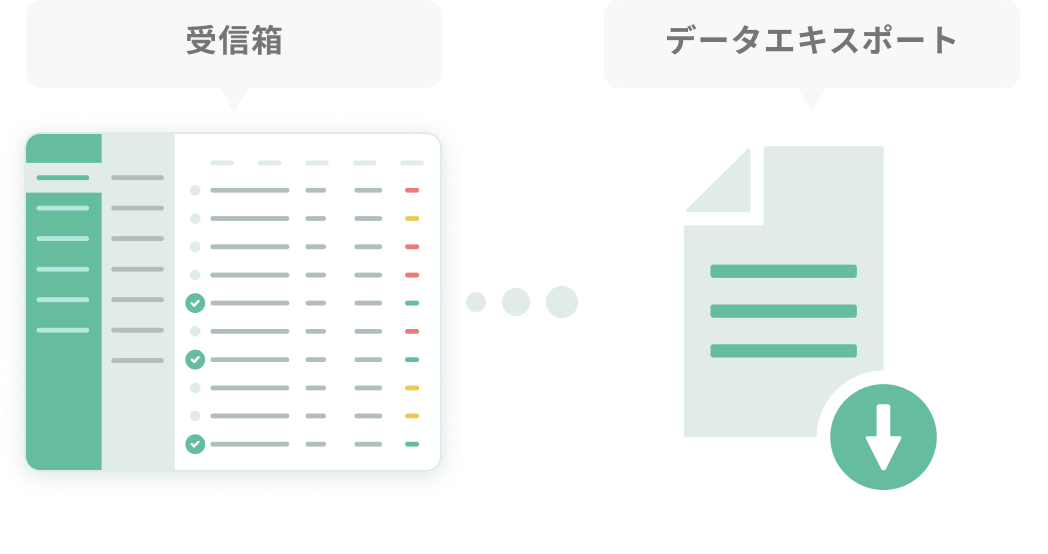 受信箱にたまった情報はチームで閲覧ができるので、検討事項が上がった際にも情報の共有がスムーズになります。また、データはCSVでダウンロードができるので、定期的にエクスポートして施策の検討などにご利用いただけます。